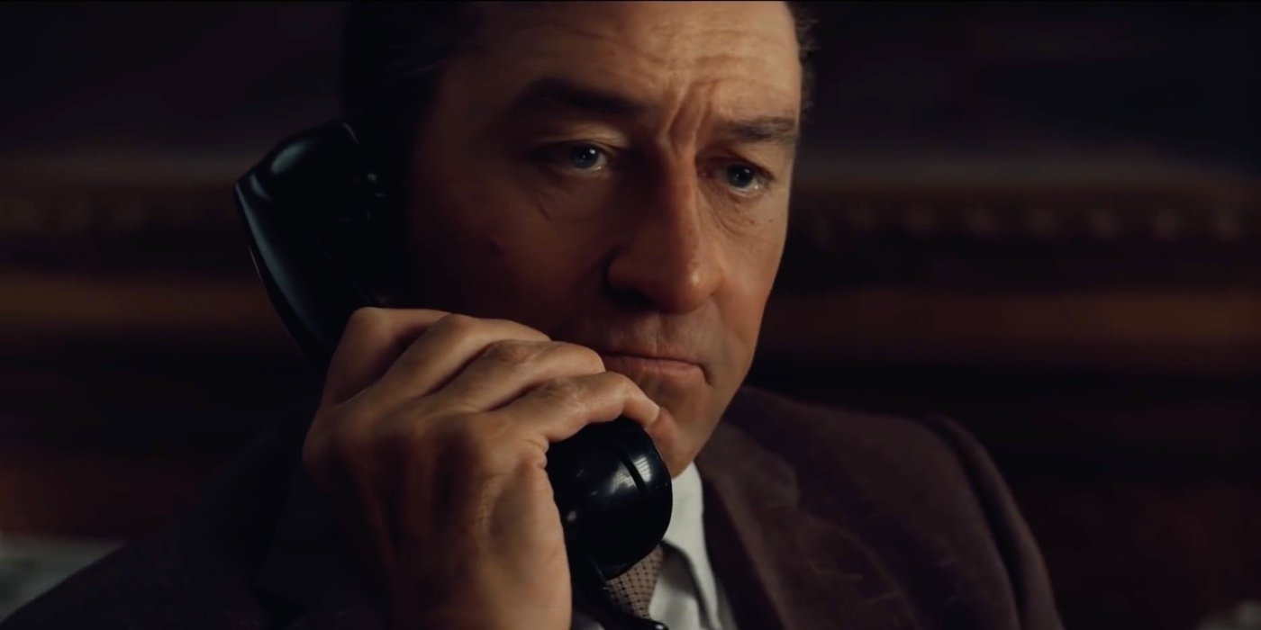 De Niro’s Frank is the movie’s main character, yet the way the film is structured, the three main actors each effectively dictate sections of the narrative. While the story is always about Frank, told from his perspective, Russ is in control of the first third, Jimmy the second, and Frank the final third. Frank, as an underling/bodyguard, is always controlled at the behest of the more powerful figure he is with, and it isn’t until the main plot is over that we really see him become his own man instead of the soldier everyone expected him to be.